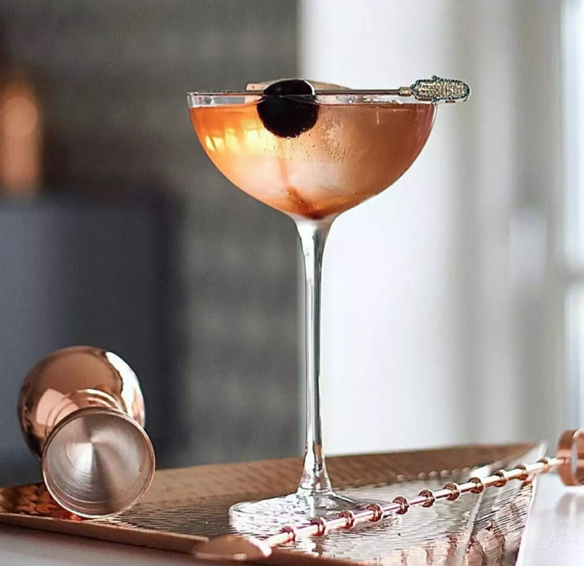 Método: Mezclar los ingredientes en un vaso mezclador con hielo. Colar y servir en una copa enfriada. Decorar con una cereza.