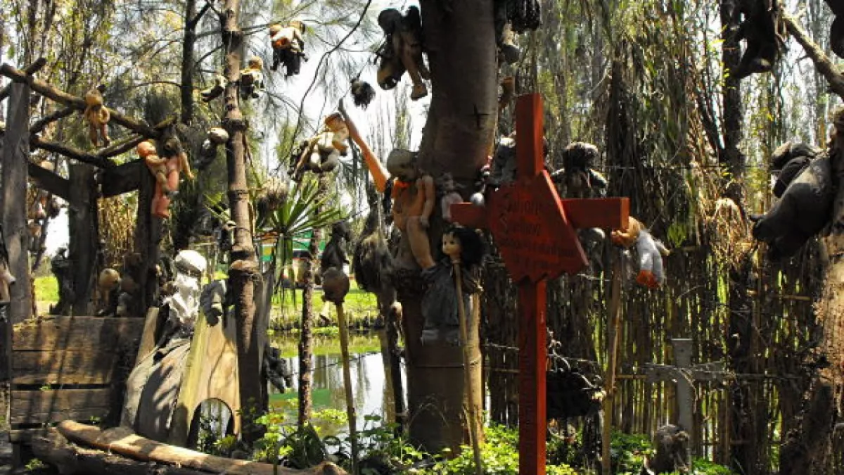 Imposible permanecer impasible ante uno de los puntos más espeluznantes de Xochimilco: un tenebroso islote decorado con incontables juguetes decadentes. Se trata de la Isla de las Muñecas, que no tuvo problemas para convertirse en uno de los puntos favoritos para quienes disfrutan de las historias fantasmagóricas. La leyenda inicia con Julián Santana Barrera, habitante del lugar, encontrando el cadáver de una niña flotando en los canales y cuyo espíritu comenzó a manifestarse desde entonces. Atormentarlo para atraerlo uno y otra vez al punto en que murió. Estas terribles vivencias lo motivaron a iniciar su inquietante colección que acumuló por más de 25 años y que presuntamente lo llevó al borde de la locura. Todo fuera por mantener tranquilo al espíritu. ¿Lo logró? El hombre falleció de un infarto en 2001 y su cuerpo fue hallado en las mismas aguas donde alguna vez él encontró a la pequeña.