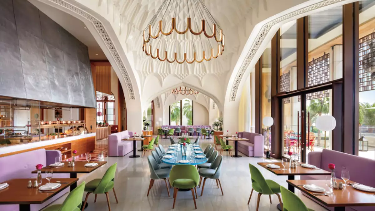 No es una exageración afirmar que en este restaurante se sirve el mejor desayuno bufet de todo Dubái. Más de una decena de estaciones ofrecen desde quesos, embutidos, frutas y ensaladas hasta platos típicos de las cocinas de Asia, Medio Oriente y Europa Oriental. La sección de panadería es la tierra prometida de los fanáticos de los carbohidratos y las barras de café y champaña merecen varias visitas para probar sus distintas bebidas.