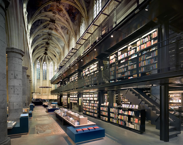 Construida en el siglo XIII, esta antigua iglesia de 1,100 metros cuadrados fue convertida en librería en el 2006.