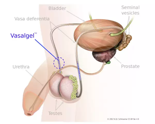 El fármaco limita su capacidad reproductiva, no hormonal ni de sensibilidad en su área genital. La inyección anticonceptiva genera un efecto que crea una barrera que tiene una vida de entre 10 y 13 años, aunque se puede revertir cuando el hombre desee tener nuevamente su capacidad reproductiva disponible. Solamente se aplica una solución en gel que disuelve el Vasalgel y las eyaculaciones con espermatozoides regresarán a la normalidad.