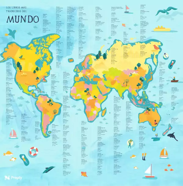 Según la investigación de Preply con fuentes en 195 países buscaron determinar cuál es el libro más traducido de un autor nativo del país. Esto para poder determinar el número de traducciones, aunque en casos donde no se recuperaron con más datos, se verificó la disponibilidad de esos libros en diferentes idiomas por medio de la World Cat Library (la base de datos de información sobre colecciones bibliotecarias más completa del mundo).
