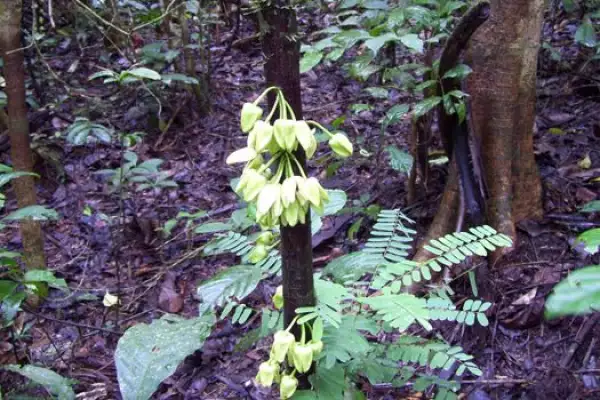 Este árbol de 4 metros de altura con un tronco ornado de grandes flores amarillo-verdosas fue descubierto en el bosque de Ebo, situado al norte de Douala, la capital económica de Camerún.