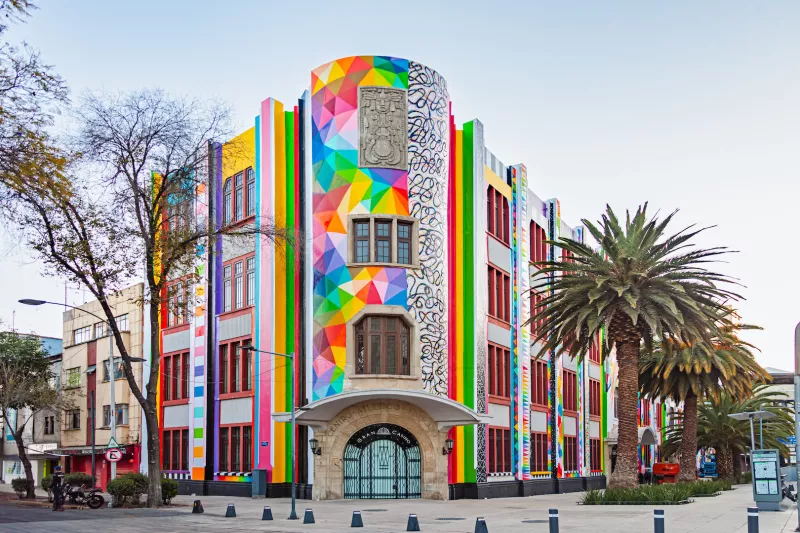 Además de la exposición dentro del recinto, OKUDA realizó una intervención de la fachada con muchos colores y diversas formas geométricas, en correspondencia al estilo visual del artista, dando vida a una de las plazas más importantes de la ciudad como lo es la Plaza de la República. “México es muy colorido, me siento muy cercano a este país porque he pasado mucho tiempo aquí, para mí México está relacionado con los colores como el rosa mexicano y muchos colores vivos”, comentó el artista acerca de su inspiración con este país que ha visitado con mucha frecuencia y en el que ha estado durante largas temporadas.