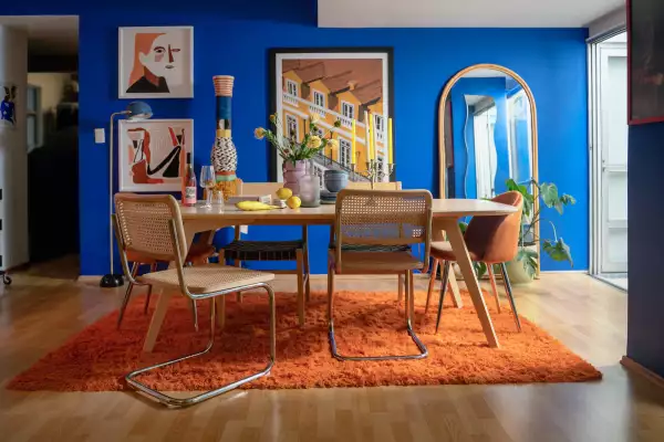 Su lugar favorito es el comedor, en donde combina madera natural con acentos de color. Para ella, este espacio cálido es ideal para cenas y vinitos con sus amigos.